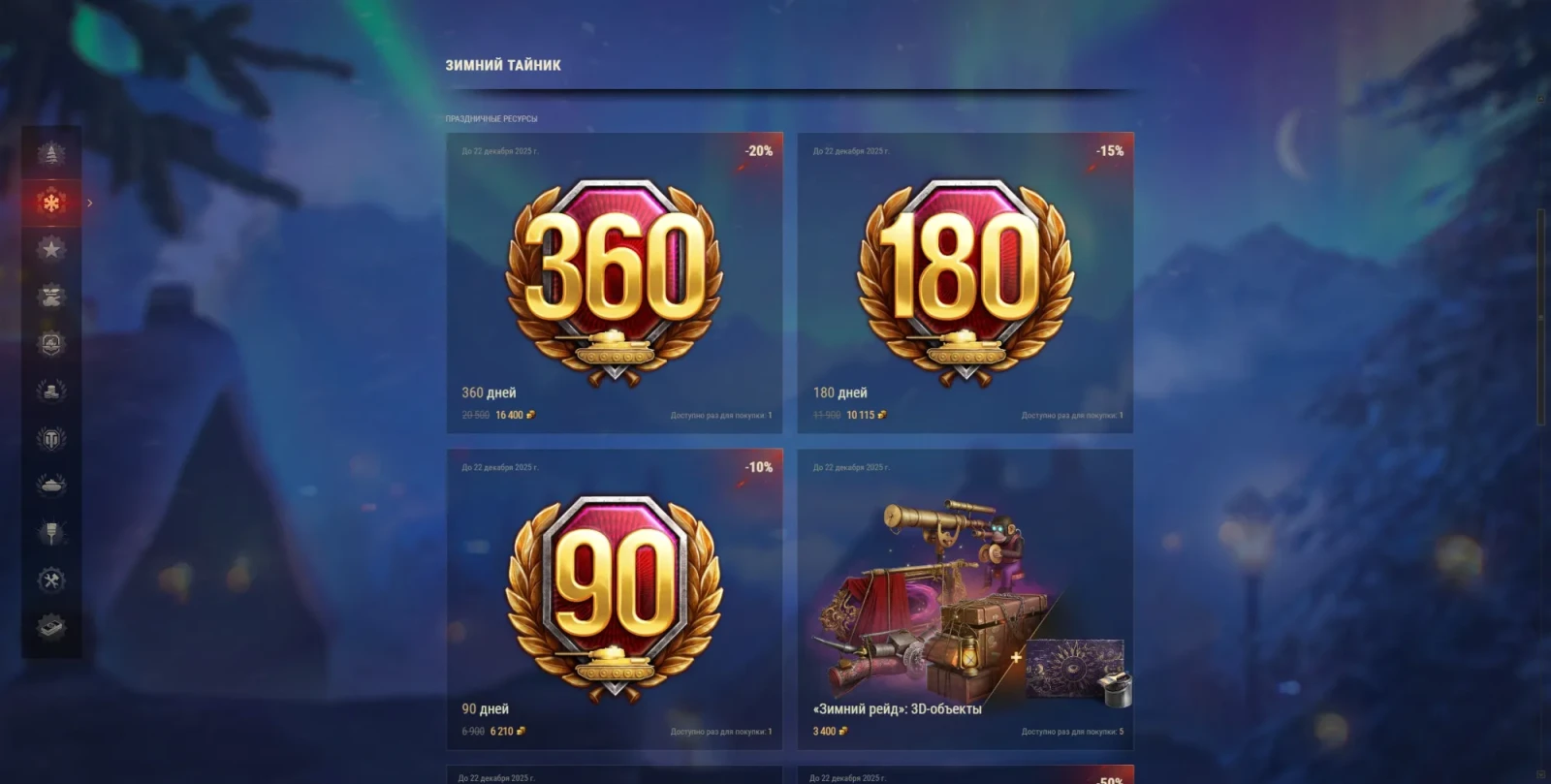Зимний тайник будет доступен в игровом Магазине ограниченное время и предложит то, чего не найти больше нигде. Не пропустите эти специальные предложения, доступные в игре за золото.