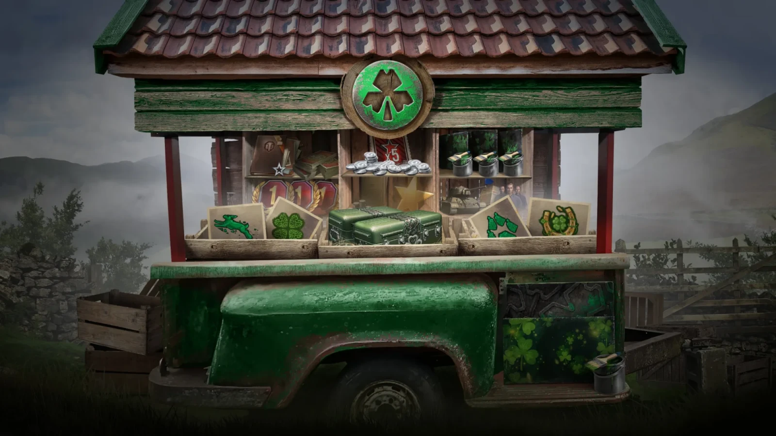 Загляните в Лавку трилистника во внутриигровом Магазине. Обменивайте печати удачи на уникальные элементы внешнего вида в тематике Дня святого Патрика, свободный опыт, боны, задачи на ×5 опыта, дни Танкового премиум аккаунта и другие ценности, включая две Изумрудные коробки, полные наград.
