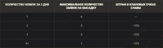 - Максимальное количество одновременных заявок клана на высадочные провинции при наличии не менее 90 игроков с техникой Х уровня — 6.