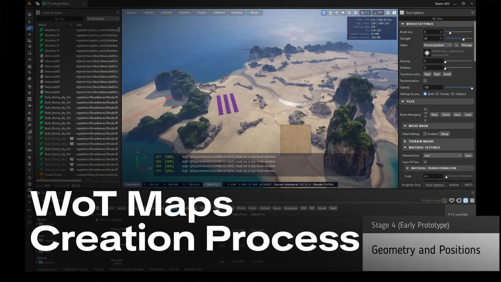 «Процесс создания карты в редакторе World of Tanks. Этот таймлапс был снят во время создания карты "Устричный залив". На видео показано создание раннего прототипа карты. После этого было внесено еще несколько улучшений и проведены десятки игровых тестов, прежде чем карта была окончательно добавлена в игру».