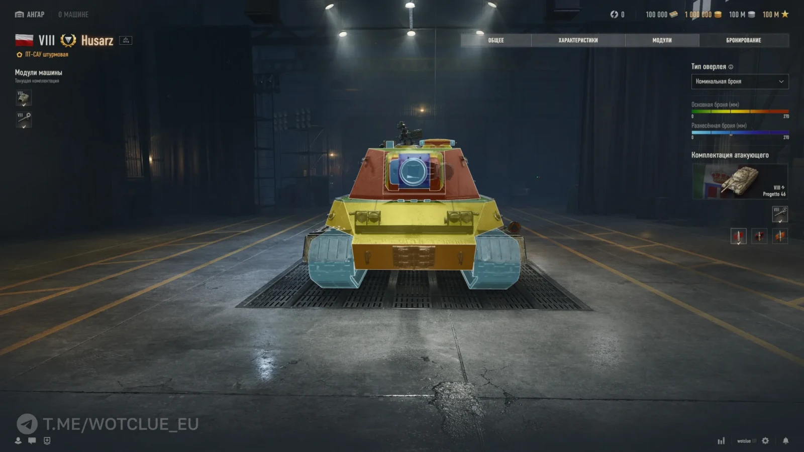 • Урон по модулям 1 (БП) снарядом на 500м: 50
