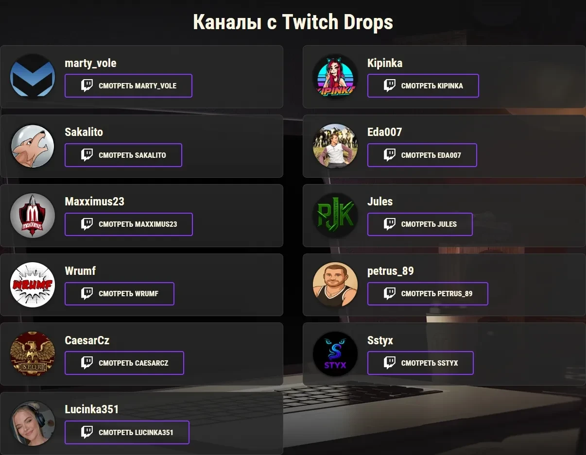 Смотрите трансляции избранных стримеров и получайте ограниченные по времени Drops.