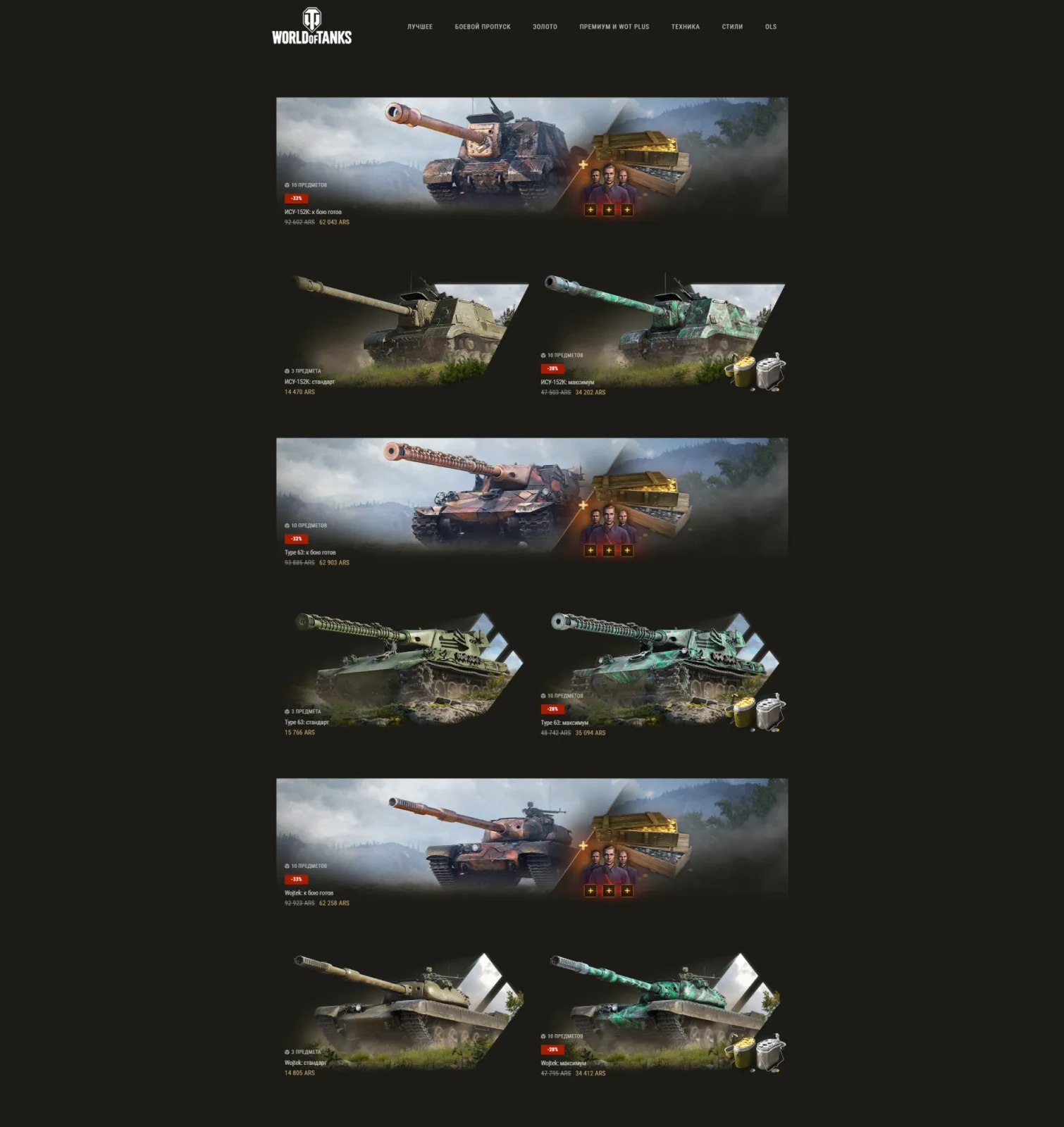 Скорость и высокий разовый урон, игра «от рельефа» или сокрушительная мощь на дистанции — выберите свой стиль боя в наборах с VIII CS-53/56 Wojtek, VIII Type 63 и VIII ИСУ-152К. Каждый набор содержит дополнительные игровые ценности, среди которых 2D-стили «Изумрудная броня» и «Медная руда», золото, личные резервы и задачи на ×5 опыта!