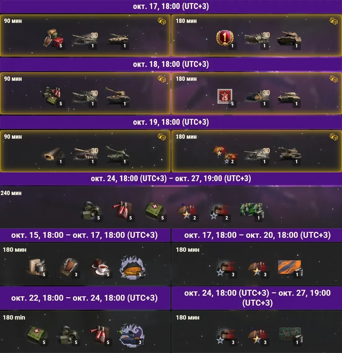 Drops во время TwitchCon. Можно получить на официальном канале World of Tanks и на трансляциях избранных стримеров во время TwitchCon. Доступны 17–19 октября.