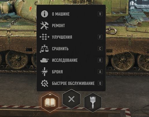 В меню в центре Ангара и на экране «Моя техника» добавлены горячие клавиши, позволяющие быстро переходить к важным разделам — «О машине», «Экипаж» и «Внешний вид» — и совершать связанные с ними ключевые действия.