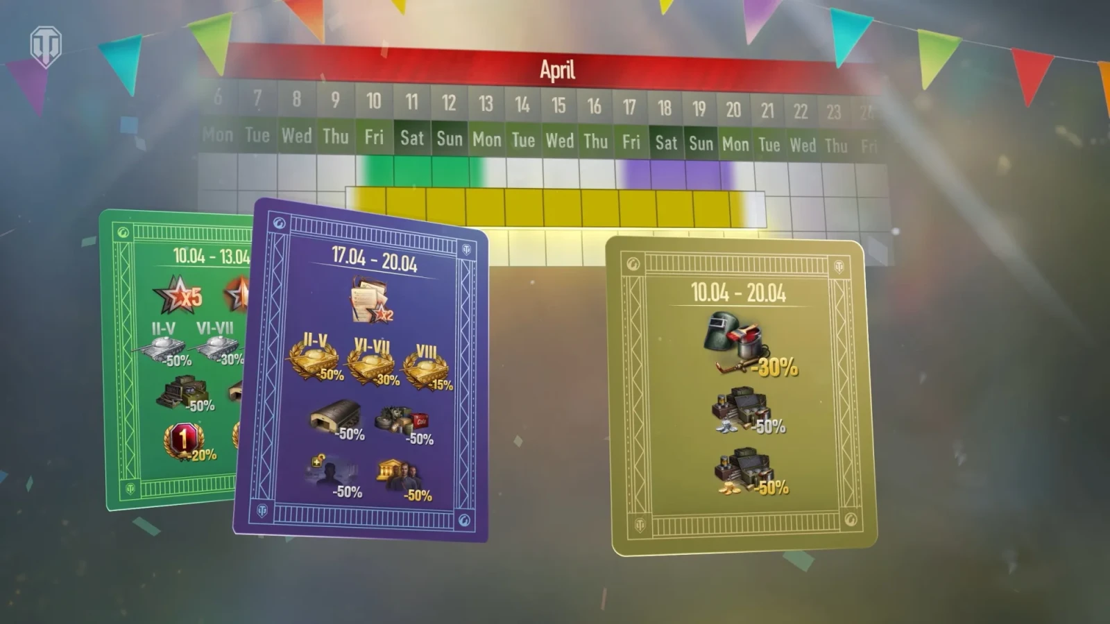 - Скидка 50% в золоте на премиум технику II–V уровней