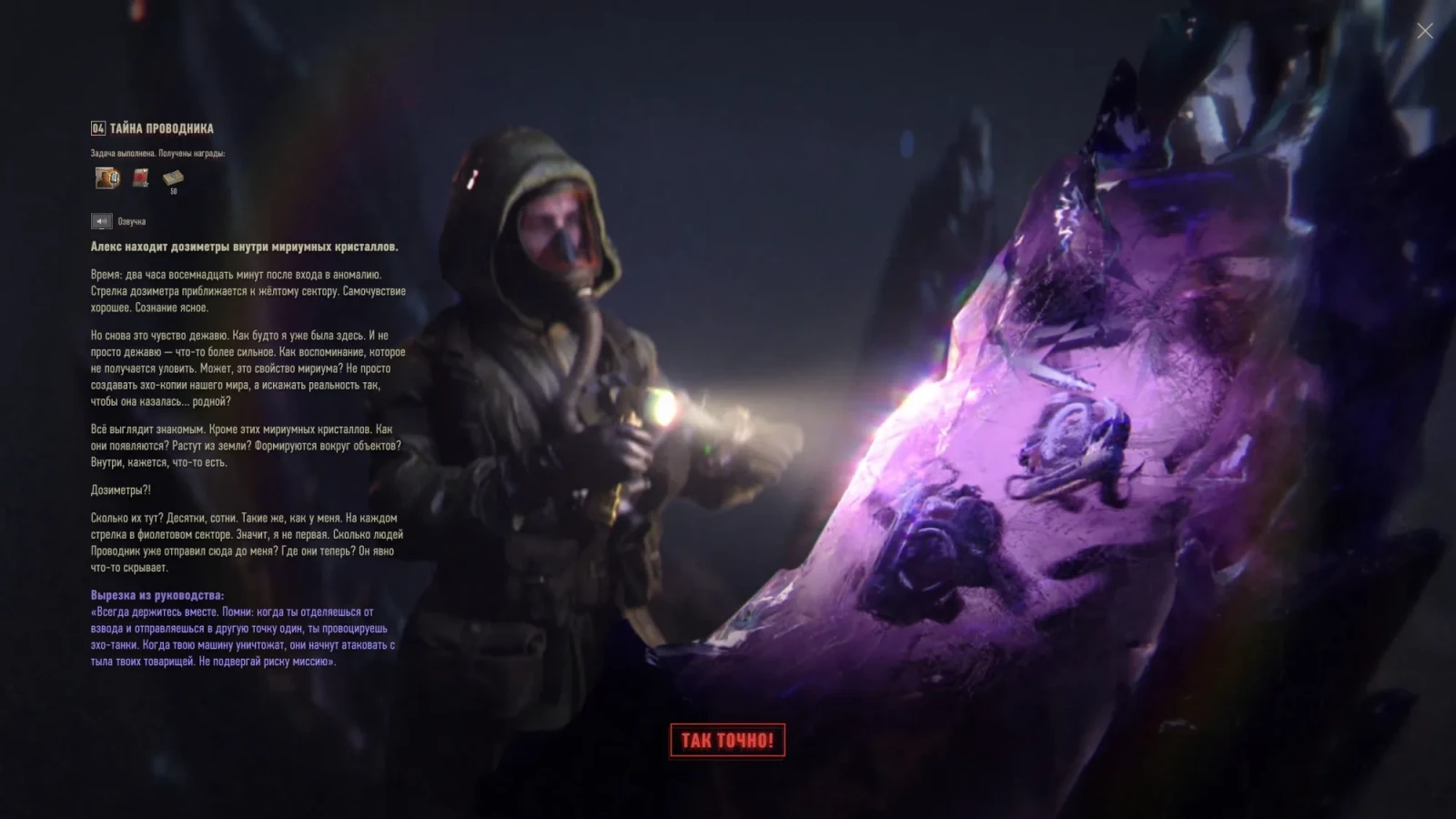 Каждый, кто входит в аномалию, получает дозиметр — небольшой прибор с циферблатом и стрелкой. Зелёный сектор — всё в порядке. Жёлтый — стоит поторопиться. Красный — пора сваливать отсюда. А фиолетовый...