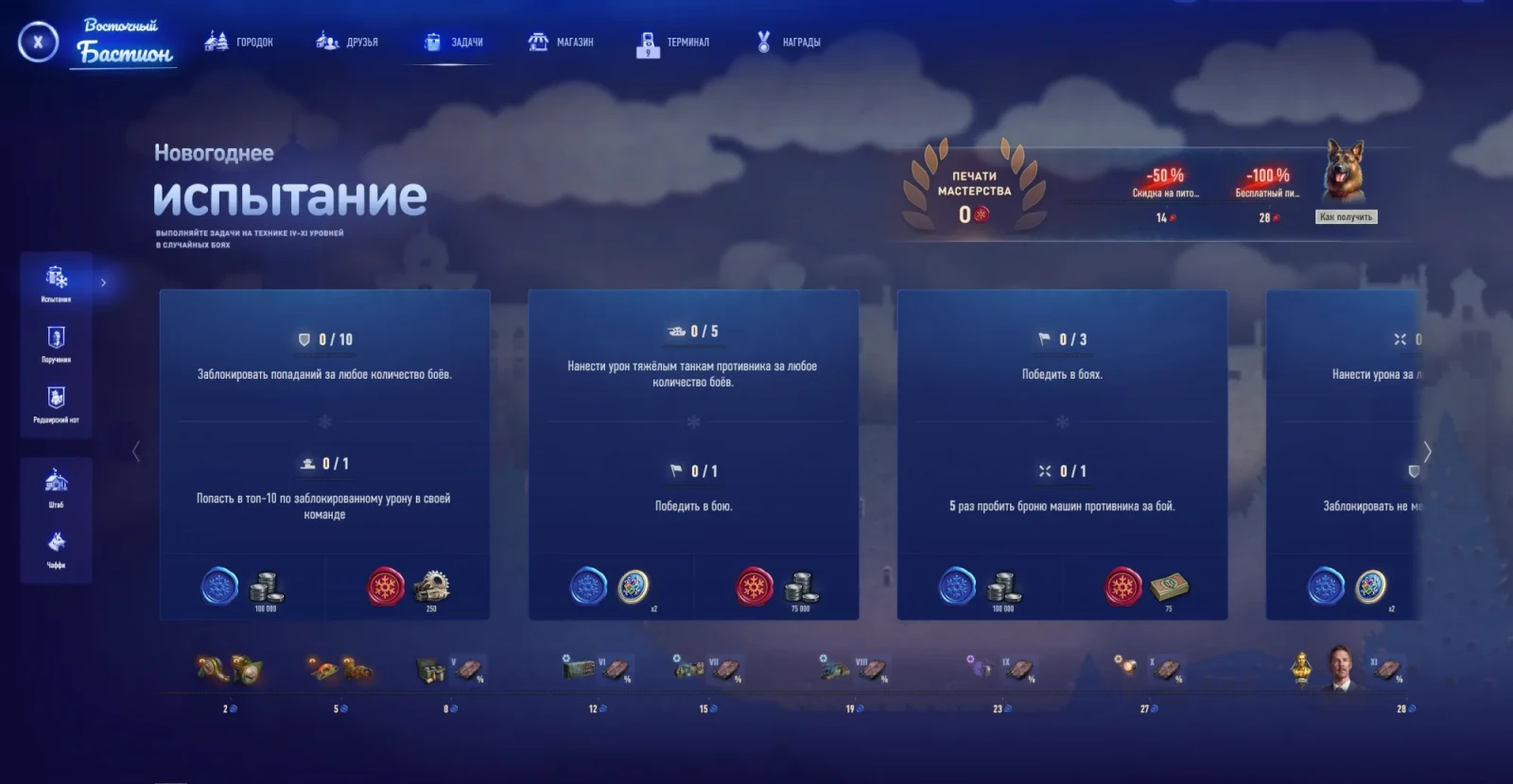 - Скидки на 5 и 6 уровни можно получить за выполнение 12 Новогодних испытаний (в прошлом году за 15 испытаний) во время Новогоднего наступления 2026.