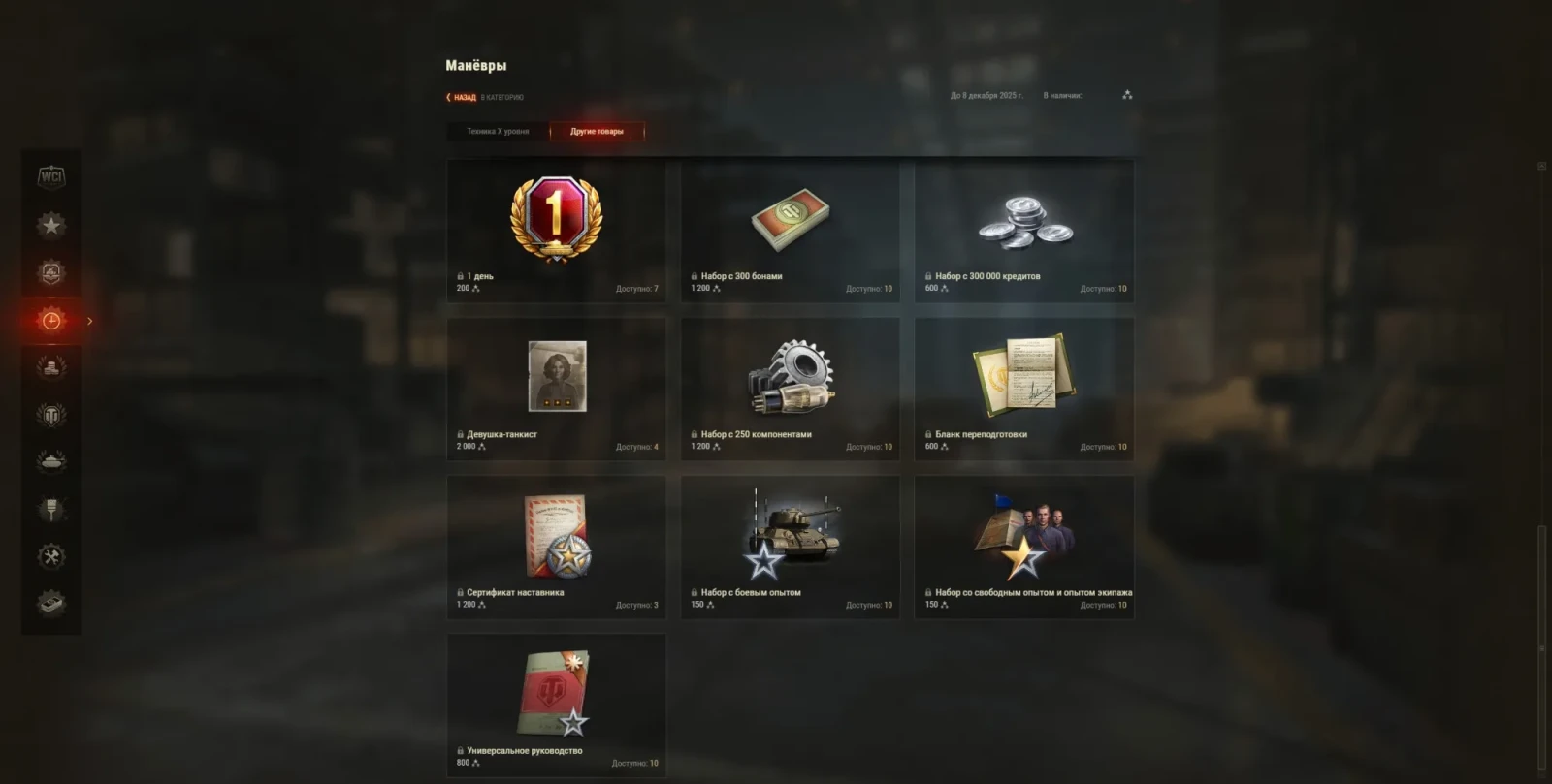 Сегодня в 07:00 (UTC+3) стал доступен обмен очков славы за Манёвры, а также были начислены боны и т.п.