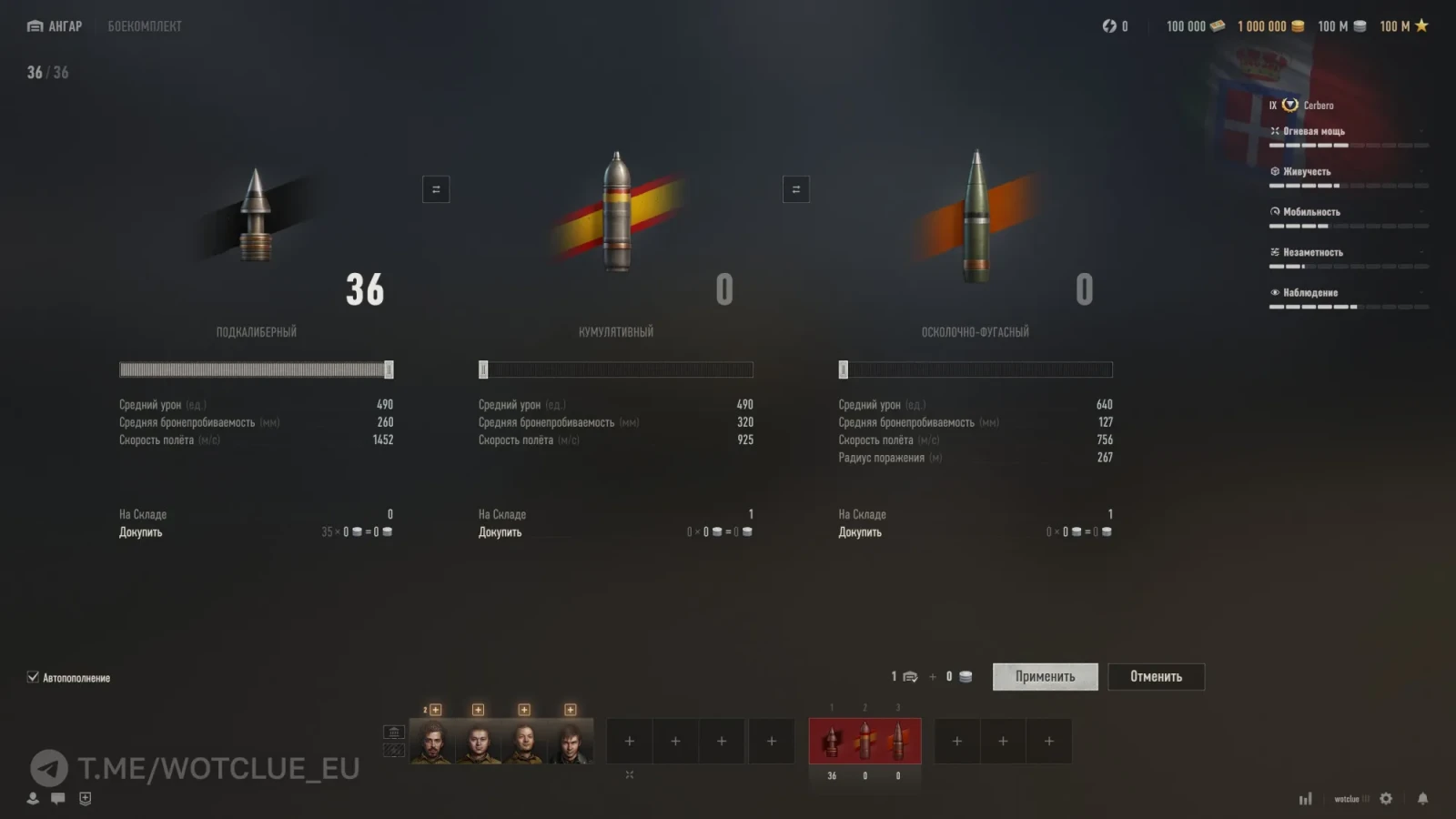 Cerbero (Италия, ПТ-9, прем, механика: Система обратной дозарядки на 3 снаряда) вышла также 12 марта на супертест, 3/3.