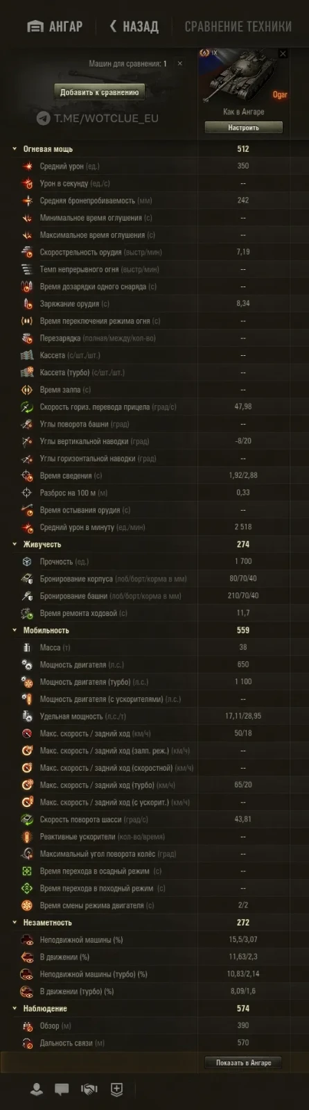 - Незаметность машины в движении/после выстрела: 11,63%/2,30% / в турбо 8,09%/1,60%