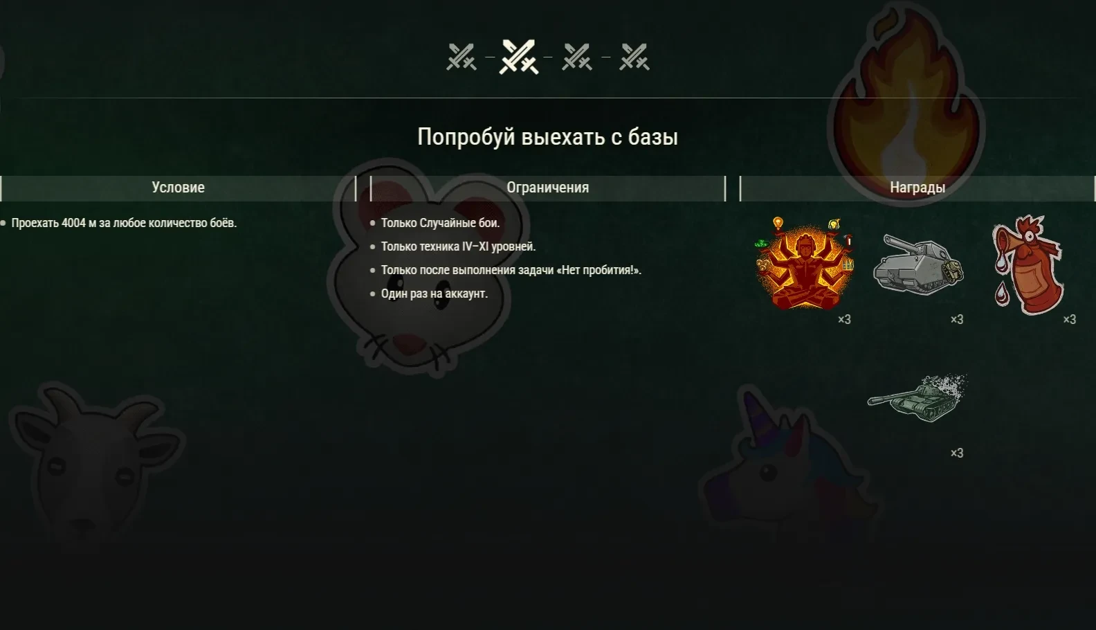 Загляните на эту ярмарку диковинок, где вас ждут задачи и наборы с элементами внешнего вида, которые добавят немного оригинальности в ваш Ангар.