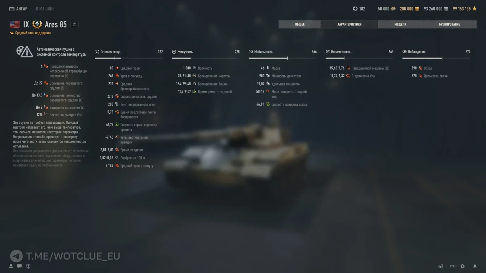 Ares 85 (СТ-9, прокачиваемый, механики: Автоматическая пушка с системой контроля температуры и Резервная гусеница) вышел впервые на Общем тесте 2.1.1.