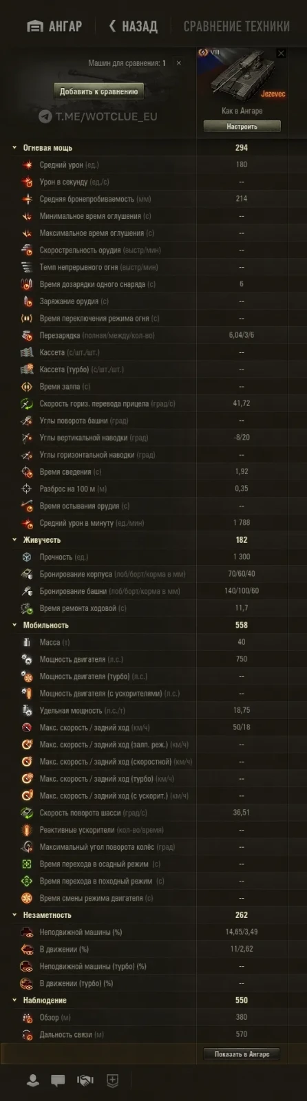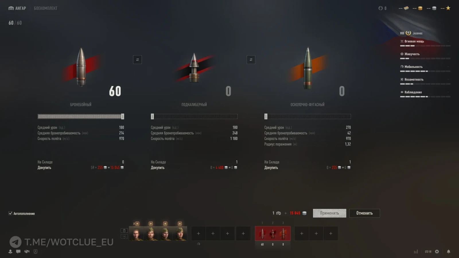 Примечательно №1, что у Jezevec также как у Coccodrillo неправильно указана перезарядка всего магазина в клиенте, но в наших ТТХ мы указали этот параметр верно. Это уже второй танк с системой дозарядки, где заряжание каждого снаряда одинаковая в магазине.