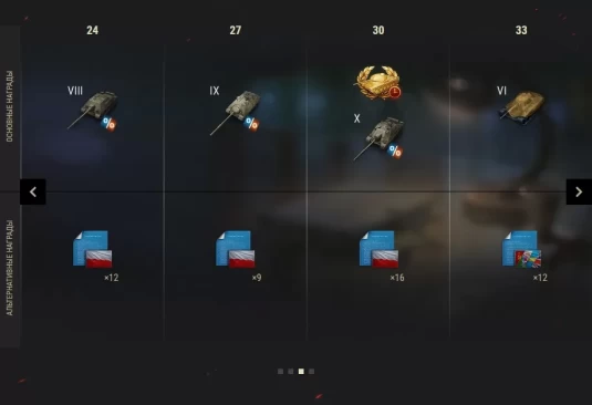 Зарабатывая очки прогрессии и проходя этапы, вы будете получать награды (в дополнение к стандартным наградам за выполнение ежедневных, бонусных и премиум задач). В список наград входят 14 дней Танкового премиум аккаунта, 7-дневная аренда премиум техники VIII уровня, бесплатная исследуемая техника VI уровня со всеми исследованными модулями, 100%-й экипаж и слот в Ангаре. Но самое главное, вы можете получить скидки на исследование и покупку техники VII–X уровней из трёх веток.